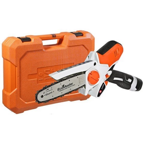 - Аккумуляторная цепная пила Sturm! CSC18061 прекрасно справится с обрезкой веток деревьев и простыми столярными работами.