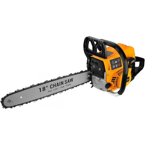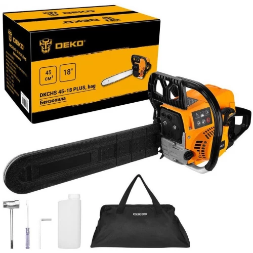 - Бензопила DEKO DKCHS 45-18 Plus — это мощный инструмент с мощностью 3,1 л.с. и объемом двигателя 45 куб. см, идеально подходящий для распила древесины. Она станет незаменимым помощником как для ухода за деревьями на вашем участке, так и для заготовки дров.