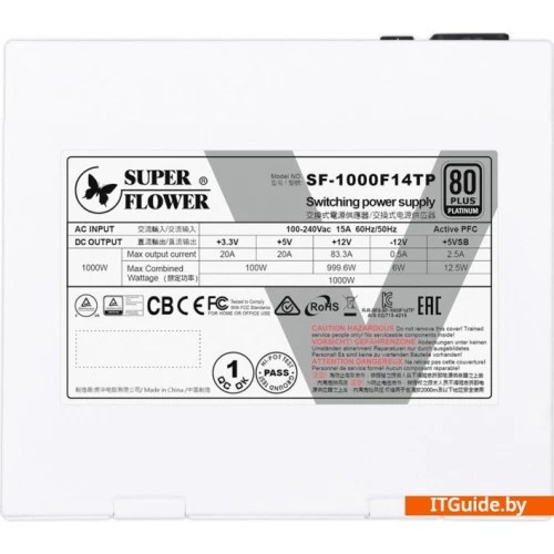 - Блок питания Super Flower Leadex V Platinum Pro 1000W SF-1000F14TP(WH) — это надежное решение для мощных игровых систем и рабочих станций. С мощностью в 1000 Вт и высоким КПД 94% при 50% нагрузке, он обеспечивает стабильную работу всех компонентов вашего ПК.