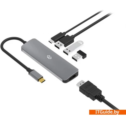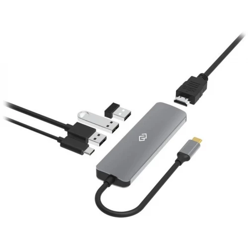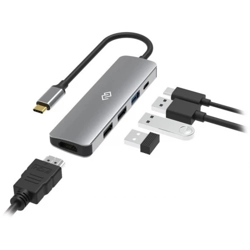 Type-C док-станция DIGMA, 5 портов - 1x HDMI( 4K@30Hz) +1x 3.2 USB-A Gen.1( 5Gbps)+ 2x USB-A 2.0 (480 Mbps) + 1 x USB-C PD 3.0 100W