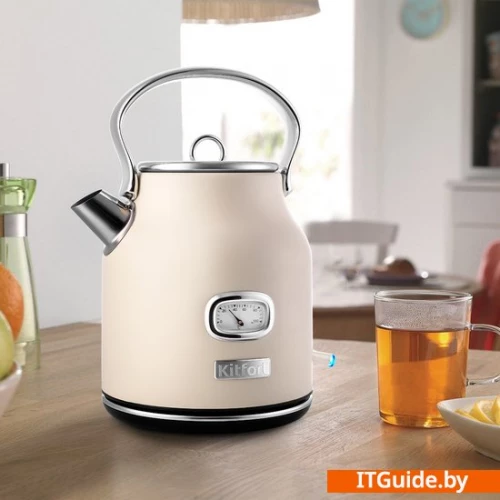 Мощный и вместительный чайник Kitfort KT-6150 подойдёт для особых встреч с семьёй и друзьями. А лаконичный винтажный дизайн придётся по душе любой хозяйке, и отлично впишется в ваш интерьер.