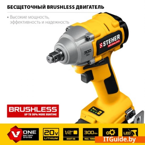 Производительное изделие с передовым BRUSHLESS двигателем. Высокий крутящий момент в совокупности с большим ресурсом двигателя делают гайковерт необходимым инструментом в автосервисе, на строительной площадке и сборочном производстве. Очень выгодное предложение для имеющих инструменты серии V-ONE