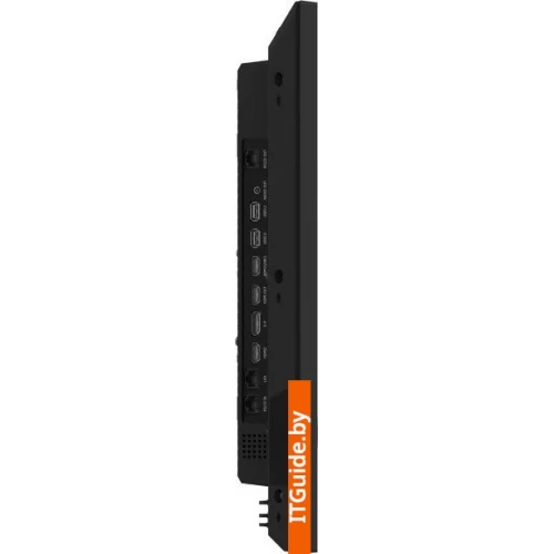 Современный тонкий корпус с узкой рамкой гармонично впишется в любой интерьер. Все разъёмы удобно расположены, что позволяет разместить дисплей вплотную к стене, экономя пространство и упрощая монтаж.