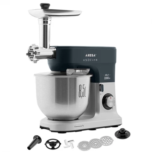 - Кухонная машина Aresa AR-1711 - это мощное устройство с мощностью 850 Вт (и 2200 Вт при блокировке вала), которое способно выполнять множество функций: от мясорубки и блендера до соковыжималки и кофемолки.