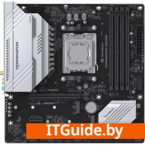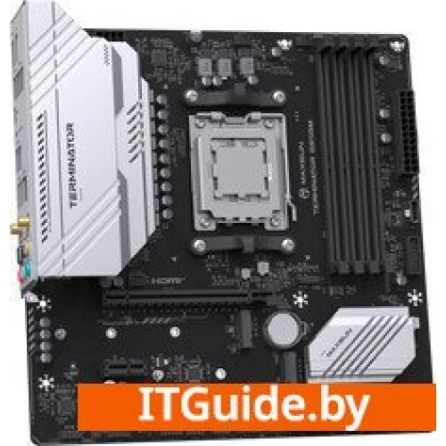 - MAXSUN MS-Terminator B850M WIFI - современная материнская плата формата mATX, предназначенная для процессоров AMD Ryzen 7000, 8000 и 9000 серии с сокетом AM5. Плата построена на чипсете AMD B850, что обеспечивает хорошее сочетание производительности и стабильности для рабочих и игровых систем.