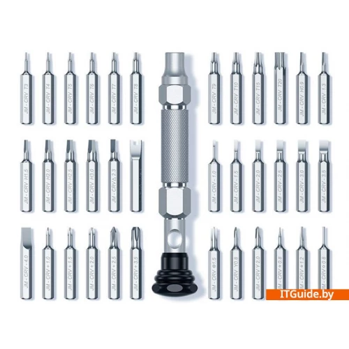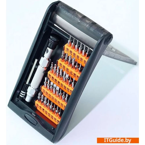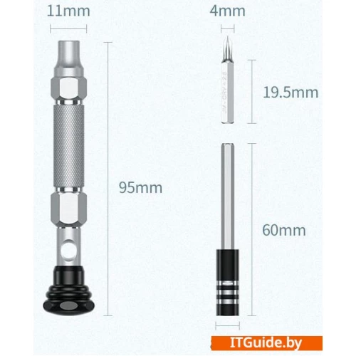 | Комплектация | Магнитный удлинитель - 60мм;Отвертка под биты;Phillips - 1.0, 1.5, 2.0, 2.5, 3.5;Flathead - 1.0, 1.5, 2.0, 2.5, 3.0, 3.5, 4.0;Pentalobe - 0.8, 1.2;Torx - T3 - T10 + T15, T20;Tri-wing - 0.8, 2.0;Spanner - 1.6;Star - 0.8, 1.2 ;Pozidriv - Y0.8, Y2.0. |