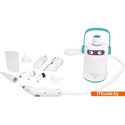 Пароочиститель Kitfort КТ-9109 способен заменить дезинфектор, стеклоочиститель и отпариватель для тканей. Главное преимущество пароочистителя — прибор безопасен для здоровья человека и не приносит вреда окружающей среде.