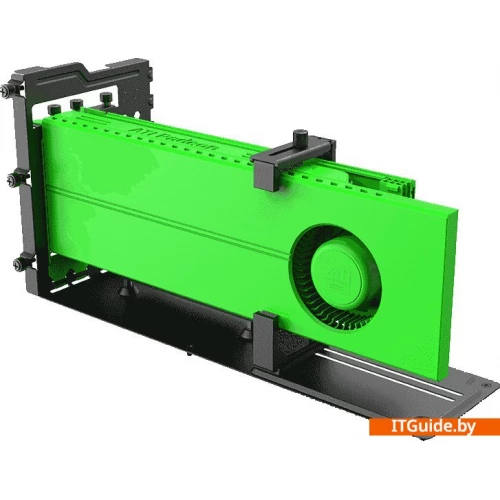 Универсальный вертикальный кронштейн графического процессора. Комплект включает в себя кронштейн и 220-миллиметровый плоский кабель PCIe 16x Riser, а также дополнительный держатель видеокарты.
