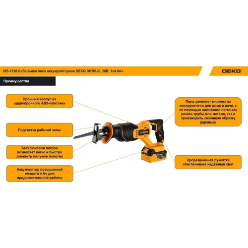 Сабельная пила Deko DKRS20 085-1126 (с 1-им АКБ)