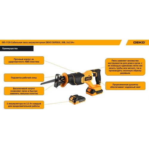 Сабельная пила Deko DKRS20 085-1129 (с 2-мя АКБ)