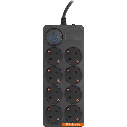 - Сетевой фильтр BK-8-EU-3-16-B оборудован 8-ю выходными розетками европейского типа с длиной провода 3 м, входной вилкой Schuko и предназначен для подключения к обычной бытовой электрической сети.