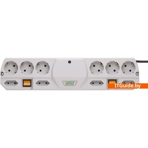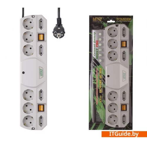 Most TRG — 2 сетевых фильтра в одном корпусе. - возможность подключить до 10 различных устройст одновременно.- возможность раздельного электропитания двух групп аппаратуры либо двух рабочих мест, расположенных рядом.- 6 евророзеток с заземлением и 4 узкие розетки без заземления.Рекомендуется для использования в сетях с относительно стабильным напряжением