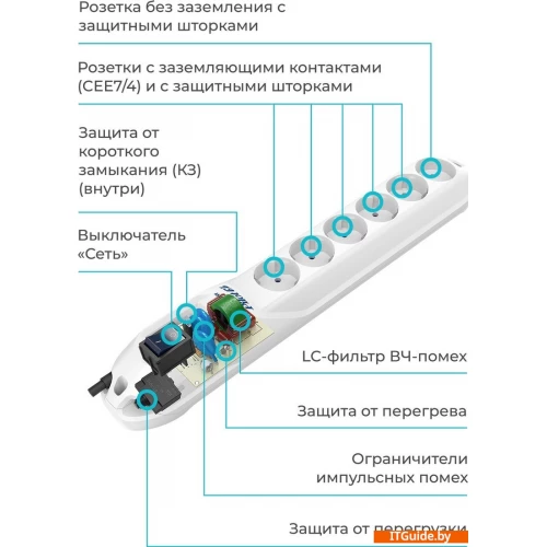 - Контактные шины сетевого фильтра Pilot GL выполнены из высококачественного металла, что обеспечивает надежный и плотный контакт вилки в розетках изделия.