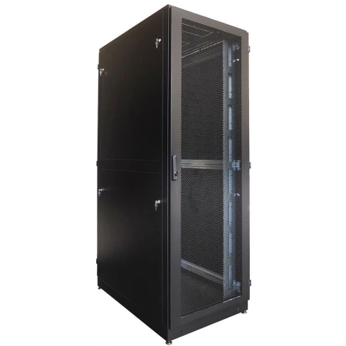 Шкаф имеет разборную каркасную конструкцию. Лёгок в сборке. Состоит из основания, крыши и двух сварных рам, соединённых комплектом швеллеров. На боковых элементах рамы выполнена дополнительная перфорация под закладные гайки. Стандартно шкафы комплектуются задней металлической стенкой и тремя видами дверей: цельнометаллической, с тонированным ударопрочным стеклом или дверью с перфорацией. Возможна комплектация двумя дверьми, исключающая заднюю стенку. В шкафах 18–36U дверь фиксируется усиленным точечным замком, в 42–48U – ригельным. Двери имеют как правую, так и левую навеску, угол открытия 180 °. Усиленная конструкция допускает распределённую статическую нагрузку до 1200 кг.