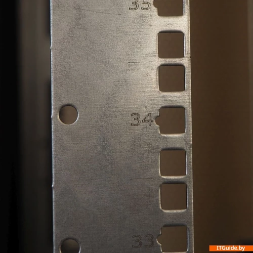 • Горизонтальные монтажные швеллеры унифицированы. В комплекте шкафа поставляются швеллеры единого типа, что упрощает сборку.