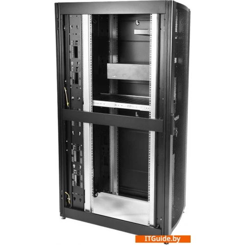 Шкаф имеет две массивные сварные рамы, соединённые комплектом швеллеров, что обеспечивает повышенную жёсткость конструкции. В зависимости от комплектации шкаф может поставляться с передней и задней перфорированными дверьми (одностворчатыми или двухстворчатыми), усиленными боковыми стенками. Двери фиксируются замками с ручкой. Возможна установка двери как с левой, так и с правой стороны. Конструкция дверей допускает их быстрое снятие и установку без инструментов. Верхние и нижние боковые проёмы закрываются отдельными стенками. Стенки фиксируются точечными замками. Крыша имеет заглушённые отверстия под кабельные вводы. Также в крыше предусмотрены отверстия для крепления кабельных каналов фиксатором КГЛ (в комплект поставки не входит).