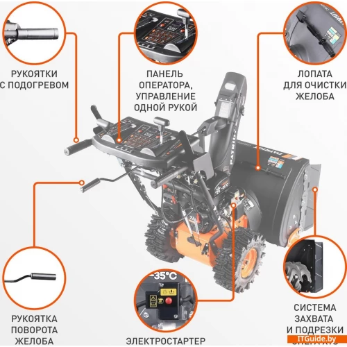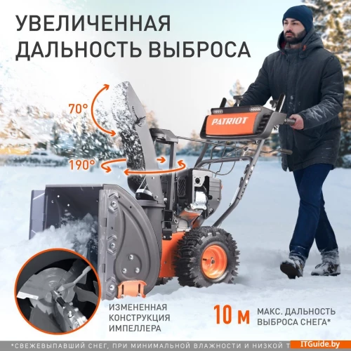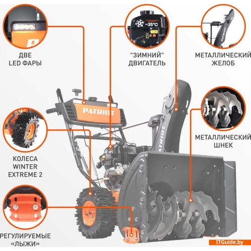 Производительный снегоуборщик PATRIOT Сибирь 67 Е подходит для уборки снега и расчистки снежных заносов. Высокий зубчатый шнек с агрессивным дизайном перемалывает любой вид снега, включая сырой и обледеневший. Система XTS расширяет возможности для уборки на 10%, увеличивая площадь и высоту захвата. Созданные для работы в зимних условиях колеса Winter Extreme с гусеничным протектором гарантируют высокую проходимость и маневренность. «Зимний» двигатель защищен от сильных морозов до -35 градусов, а электростартер позволяет запускать его по нажатию одной кнопки в любую погоду. Для работы в темное время модель оснащена LEd-фарами и подсветкой зоны работы двигателя. Управление вынесено на отдельную панель, дающую быстрый доступ ко всем его элементам. Снегоуборщик оснащен системой подогрева ручек.