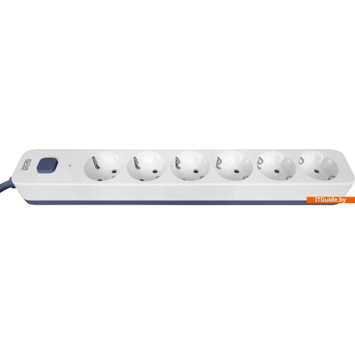 - Особенности: плавкий предохранитель, варисторная защита, защитные шторки на розетках, шесть евро розеток CEE7/4 (EU), максимально допустимая нагрузка 4000 Вт, двухполюсный выключатель с защитой от случайного включения.