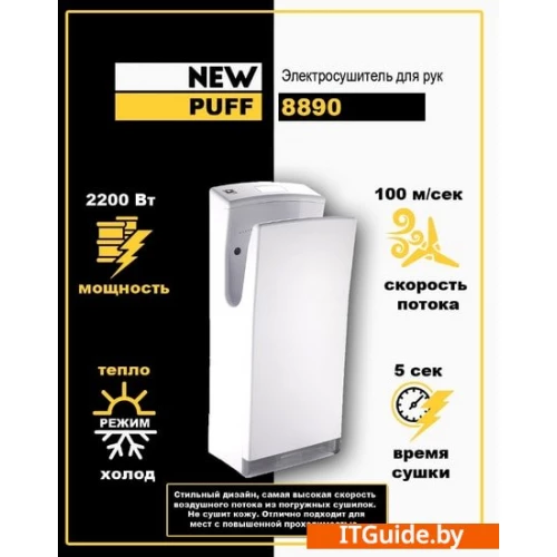 Обладает стильным дизайном и самой высокой скоростью воздушного потока из погружных сушилок для рук - более 100 м/с. Не сушит кожу. Отлично подходит для мест с повышенной проходимостью. .