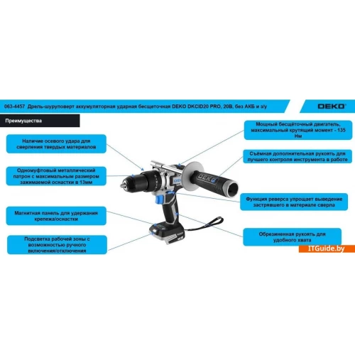 Ударная дрель-шуруповерт Deko DKCID20 PRO 063-4457 (без АКБ)