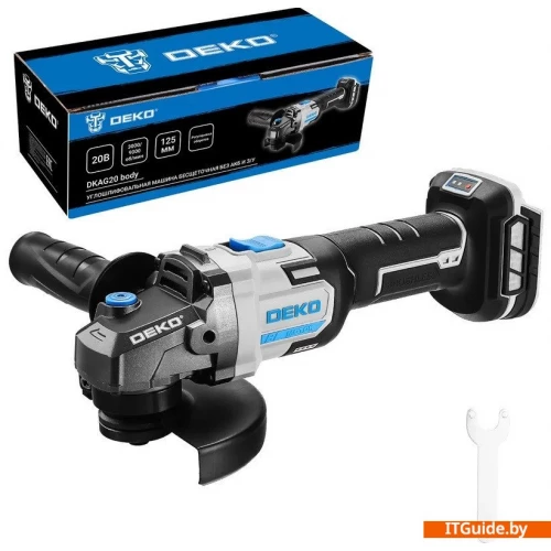 - Угловая шлифмашина DEKO DKAG20 работает на бесщеточном двигателе и имеет мощность 20В. Она идеально подходит для шлифовки и резки различных материалов, таких как дерево, металл, камень, бетон и керамика.