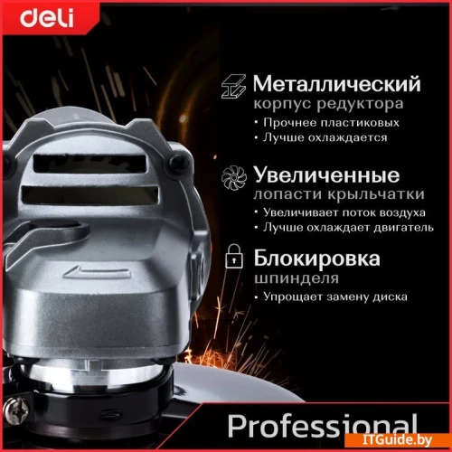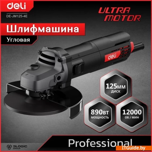 - Углошлифовая машинка Deli DE-JM125-4E – это профессиональный инструмент, предназначенный для выполнения разнообразных задач, таких как шлифование, резка и обработка различных материалов.