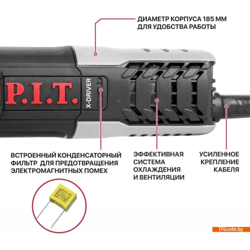 Плавная электронная регулировка оборотов позволяет выбрать оптимальный скоростной режим при различных видах работ по разным материалам.