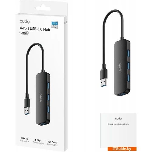 - USB-хаб Cudy UH40A — это идеальное решение для тех, кто нуждается в расширении возможностей подключения своих устройств. С четырьмя портами USB-A вы сможете подключить сразу несколько гаджетов, что делает его незаменимым аксессуаром для работы и развлечений.