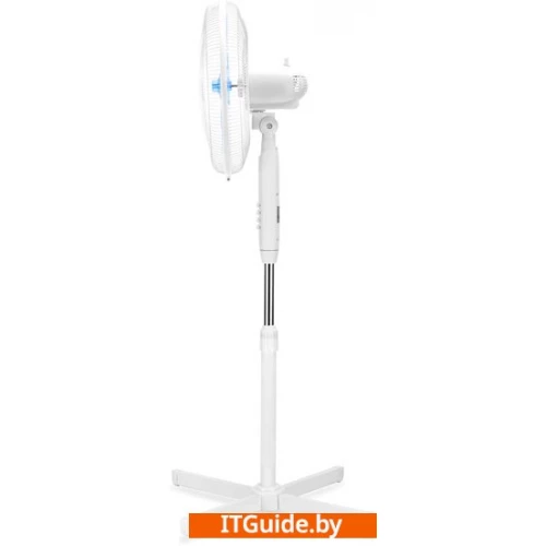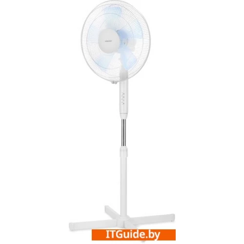 Современный, стильный и мощный напольный вентилятор CF-2029 обеспечит идеальное проветривание комнаты или офисного помещения. Диаметр рабочей части прибора составляет 42 см. Благодаря продуманной геометрии пяти лопастей процесс охлаждения воздуха происходит максимально быстро. Высота прибора и угол наклона прибора регулируются механически. В вентиляторе предусмотрено 3 скорости вращения лопастей: H (high, высокая)/M (medium, средняя)/L (low, низкая). Для еще более эффективного охлаждения воздуха корпус вентилятора способен поворачиваться на 75° (эта функция активируется путем нажатия специальной кнопки). Номинальная потребляемая мощность прибора — 40 Вт. Купите напольный вентилятор CF-2029, который гарантирует особый комфорт для работы или отдыха в жаркое время года.